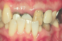 当院来院時32歳。重度の歯周病です。特に歯列弓から飛び出している歯は、歯肉がかなり下がってしまっているのがわかります。