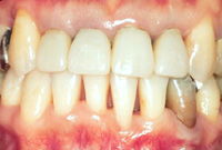 歯周病の発症や進行の大きな原因のひとつに、歯並びや、咬み合わせの悪さが挙げられています。当院では、治療目標の一つに「健康な歯周組織を作る」ということを掲げています。歯を綺麗にアーチ状に並べることにより、歯が磨きやすくなりますし、歯周病で破壊された歯槽骨(歯を支えている骨)や歯肉の形態を改善させることもできます。咬み合わせも良くなるので、一部の歯に余計な力が加わることがなくなり、歯周組織への負担も軽減します。治療が始まるとすぐに歯磨き指導を行い、毎回衛生士さんが磨き残しのチェックとクリーニングを行なっています。しかし、この治療目標を達成し持続させるには、皆さんのホームケアがとても重要になりますし、ホームドクターで定期的に健診を受けている方はそれを維持して下さい。歯は一生使う大切なものですから、頑張って正しい歯磨きを実践し習慣づけ、重度の歯周病とは一生縁のない健康な歯周組織を手に入れましょう!!