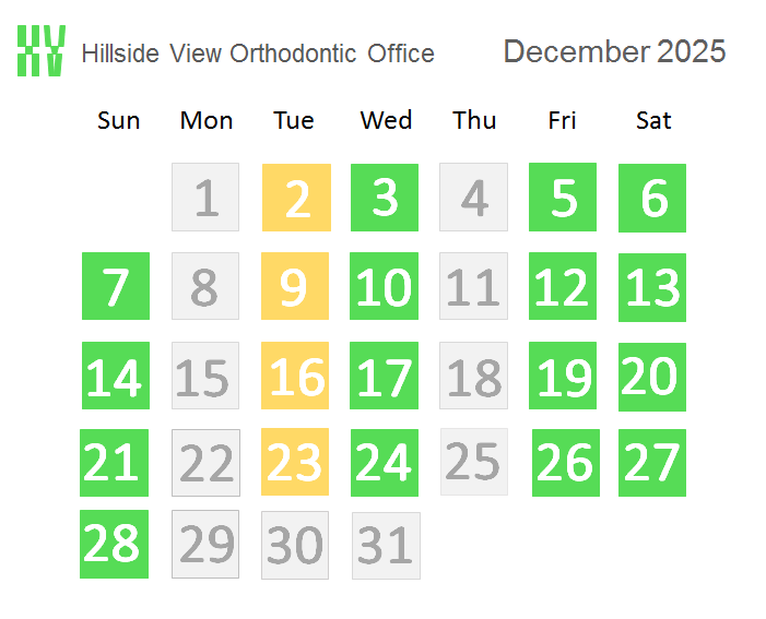 2025年12月の診療日 2025年11月4日 最終更新日時 : 2025年11月4日 hillsideview 🟩は診療日で日・水・金・土です。⬜️は休診日で月・木・祝ですが、12月29日(月)より1月5日(月)まで冬休みをいただきます。🟨は休診日ですがスタッフはおりますので、電話対応しております。お困り事がありましたらご連絡ください。